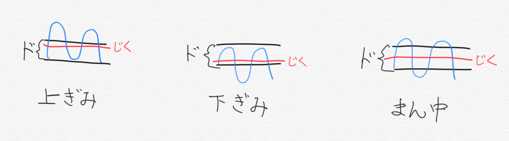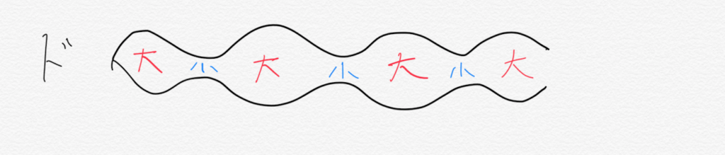 音程変化式ビブラートは、異なる2つの音を往復することで音を揺らします。図で表すと以下のようになります。