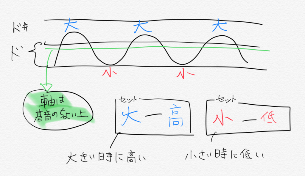 ※1音が大きい時に高い音、音が小さい時に低い音。