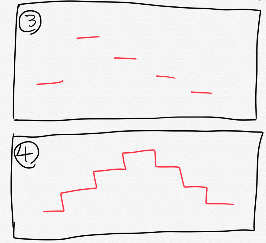 このように自分の解釈でいいので、図に書いてみましょう。練習したいフェイクや少しだけできるフェイク、憧れのアーティストがやっているフェイクを図にして理解しようとしてみましょう。そして、自分の書いた図を何回もみて練習して習得していきましょう。