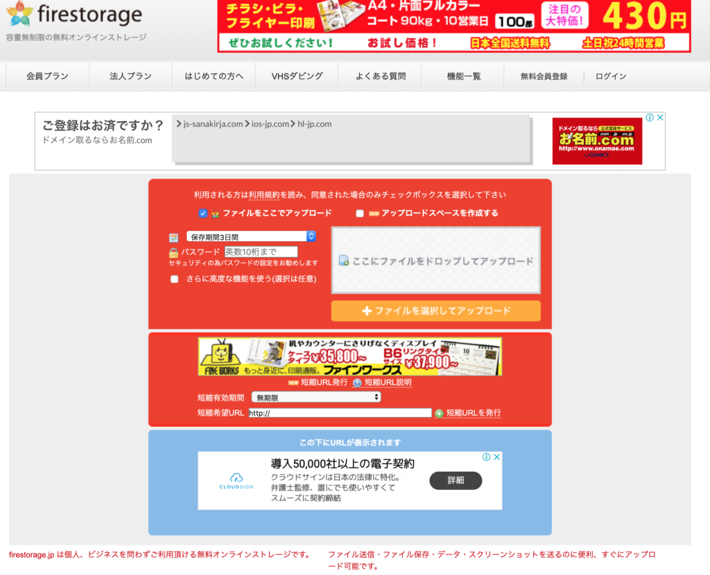 しかし、保存期間が最大7日間です。ギガファイル便よりも短い設定です。逆にかなり短い時間で設定が可能です。大切な情報をネット上に長い間晒しておきたくない場合はFirestoragew利用する方がいいかもしれませんね。