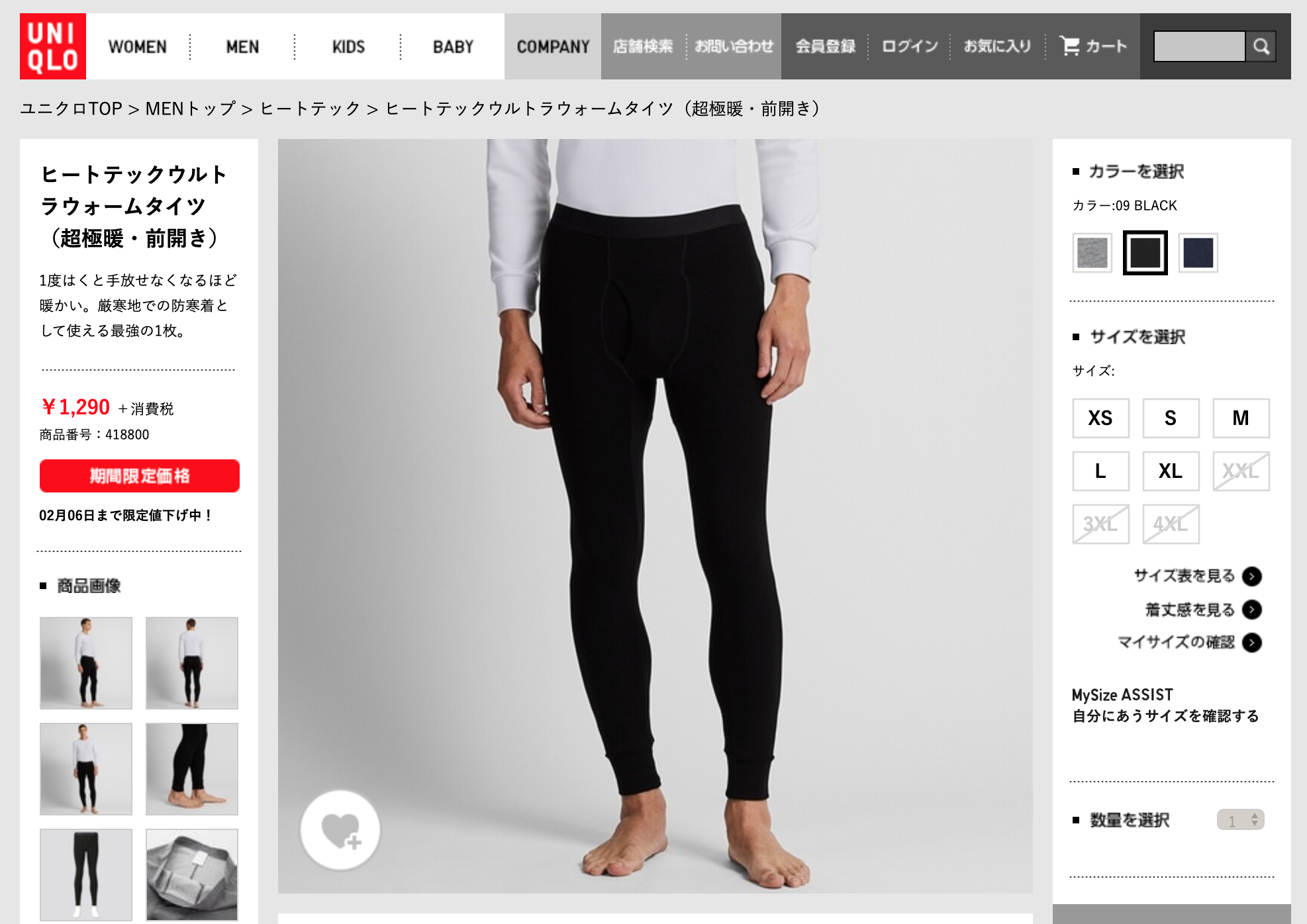 これもまた最高の商品で1位と悩みました。下半身の防寒って意外と手を抜きがちじゃ無いですか?下半身のアウターも基本着ることないですしね。そこでインナーで防寒ということで、こちら導入したところ最高でした。