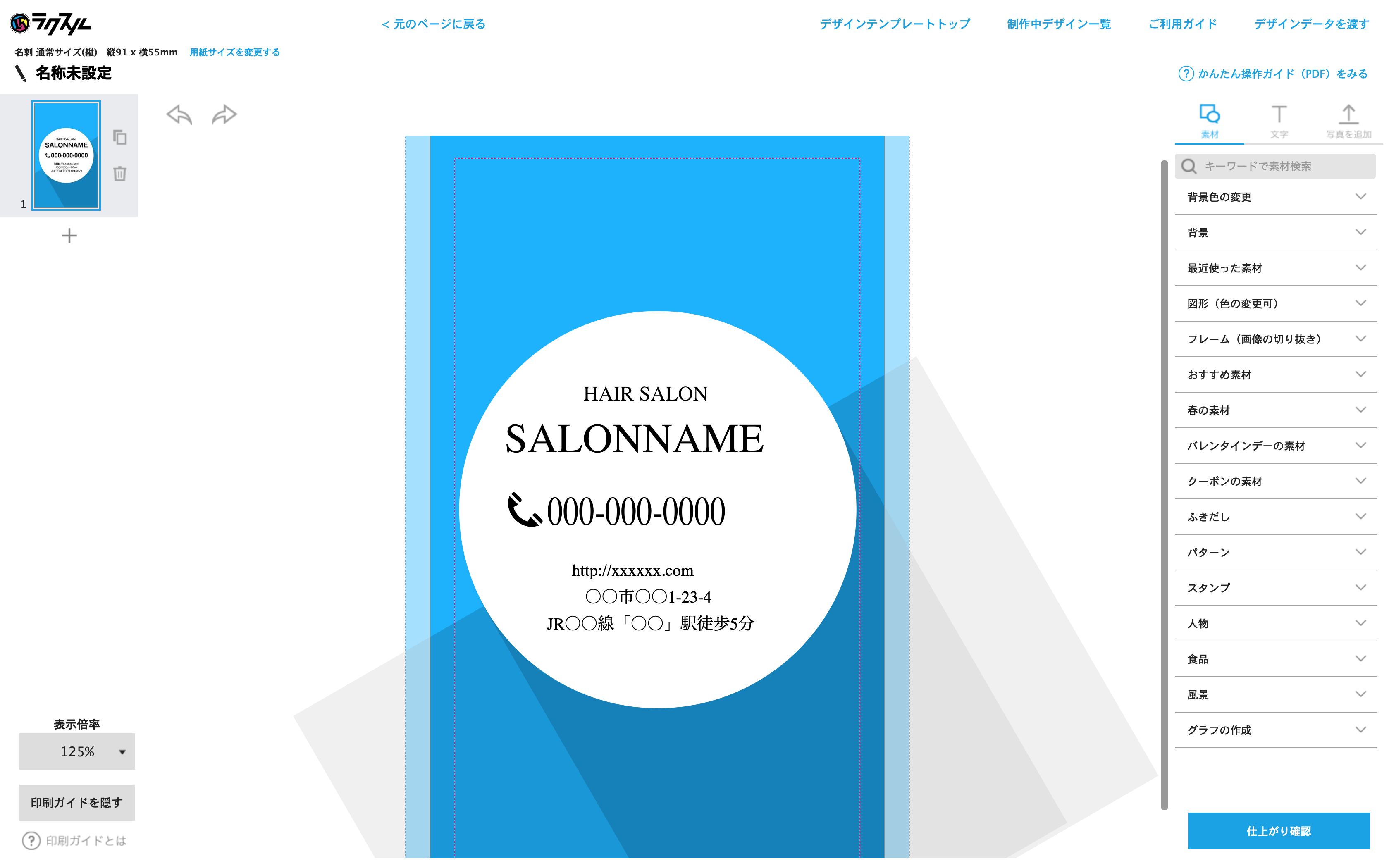 ここにめっちゃデザインがいっぱいあります。死ぬほど凝ったデザインは難しいですが、「一瞬」のための名刺ですがから、シンプルなデザインなら自分でやった方がコストを抑えられますよね!チャチャット作ってみましょう!