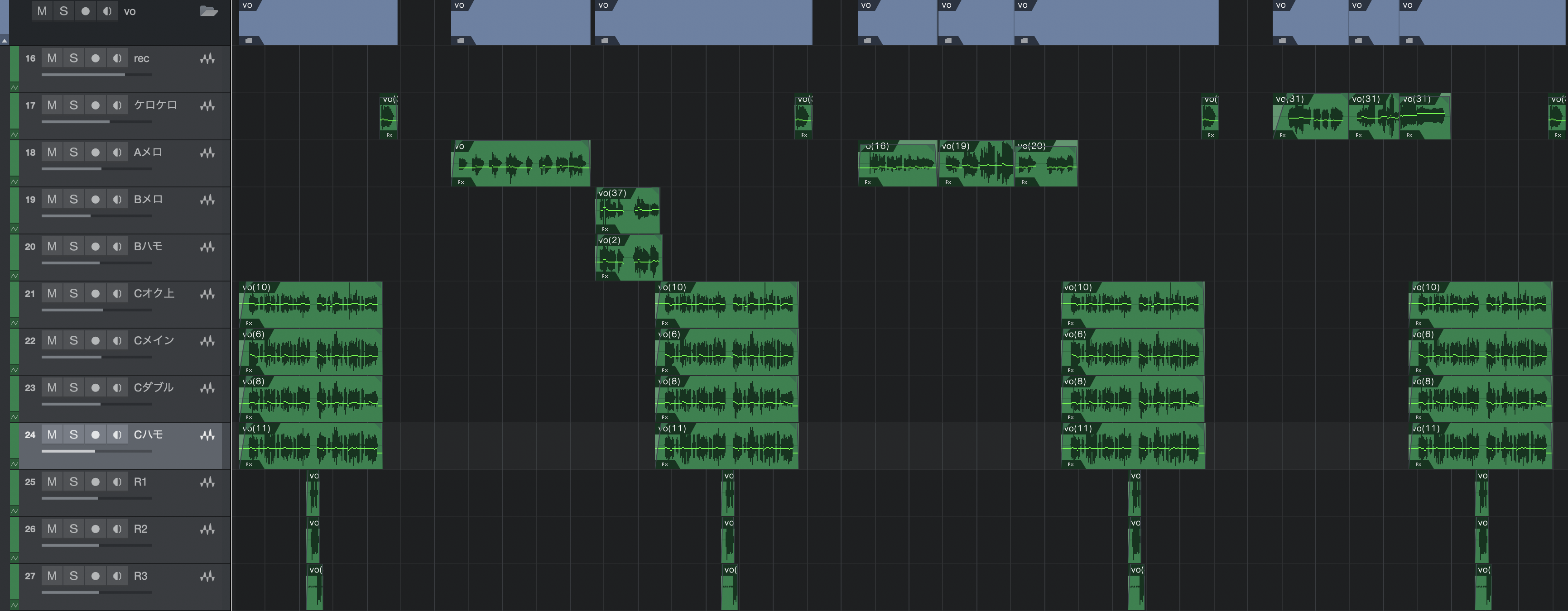ボーカルトラックは前述の通りそこそこのトラック数になります。