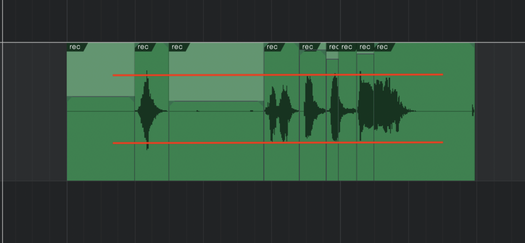 一つ一つのボリュームが平均して同じくらいの音量にするとあとで加工がしやすくなります。