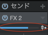 「ミックス」のタブを展開したまま、センドリターンを組みたいトラックの「センド」の「+」を押して、先ほど展開したFXチャンネルを選択します。