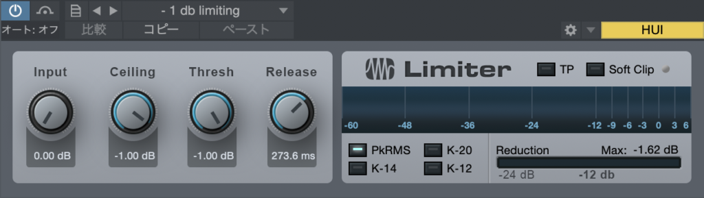 プリセットは「-1db limitting」です。