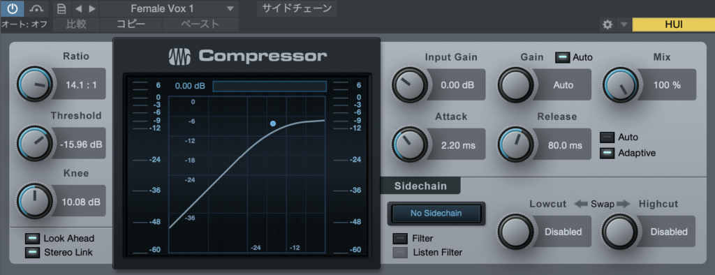 プリセットは「Vocals」のなかの「Female Vox 1」です。