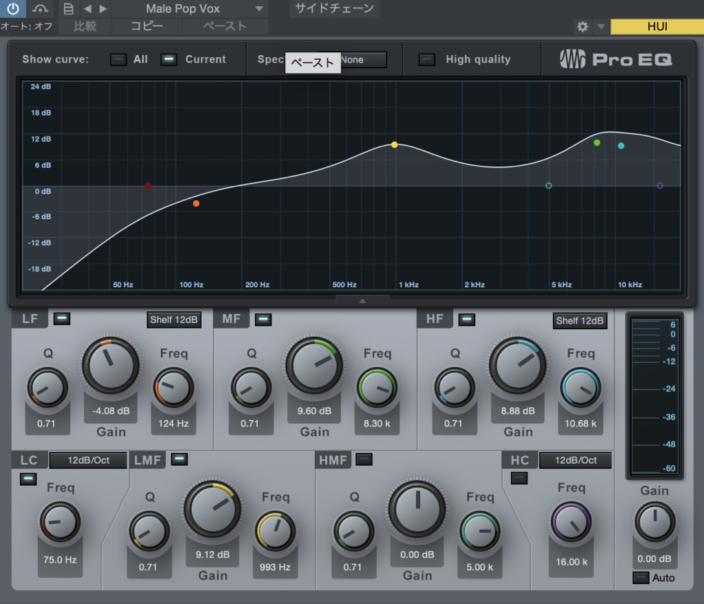プリセットは「Vocal」のなかの「Male Pop Vox」です。