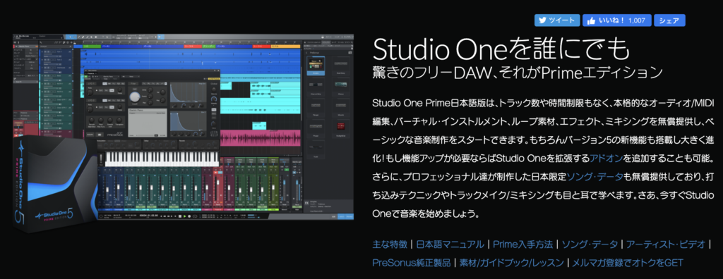 無料版というと製品を買って欲しいがためのお試し期間的なものがあるのが普通なところ、なんとStudioOnePrimeは期限が無制限なのです。