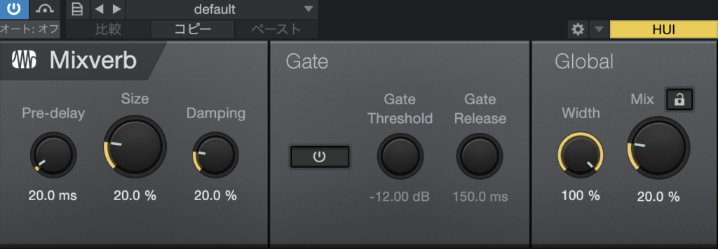 初心者のかたはまずプリセットと一番右のMixつまみだけをいじったとしてもそれっぽいリバーブがかけられちゃいます。