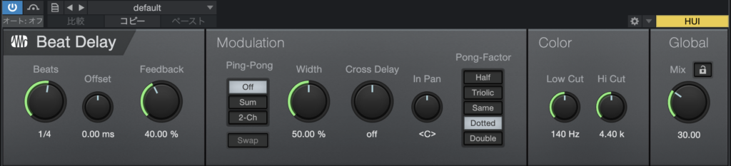そのなの通りビート、つまるところ楽曲のテンポに同期してディレイをかけることが可能です。