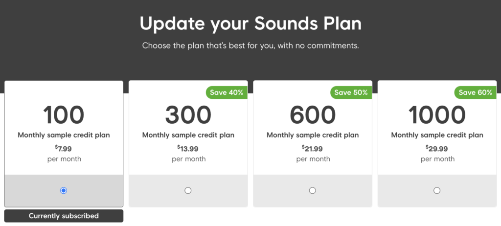 月にダウンロードできるサンプルの数によって料金が変化する設定です。最も効果なプランでも3000円くらいですのでリーズナブルな印象です。