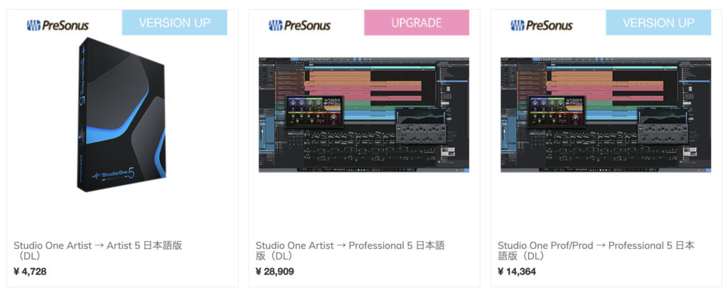 「Artist」は通常盤でだいたい¥10,000くらい、「Professional」はだいたい¥40,000くらいですね。